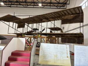 入間基地では明治43年、国内で初めて飛行した動力飛行機「アンリ・ファルマン機」が展示されていて116年前の飛行機を見学しました。